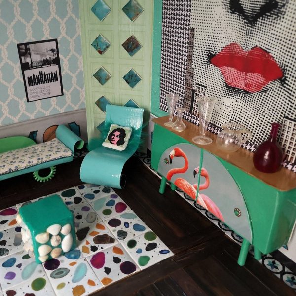 Elaboro productos en miniatura hechos a mano, pequeñas obras artísticas, entre las que destacan baldosas y muebles artesanales. Aparte diseño interiores y construyo escenarios con decoración actual. También realizo cuadros y objetos decorativos. Dispongo de tutoriales, paso a paso de mis trabajos, y materiales para descargar.