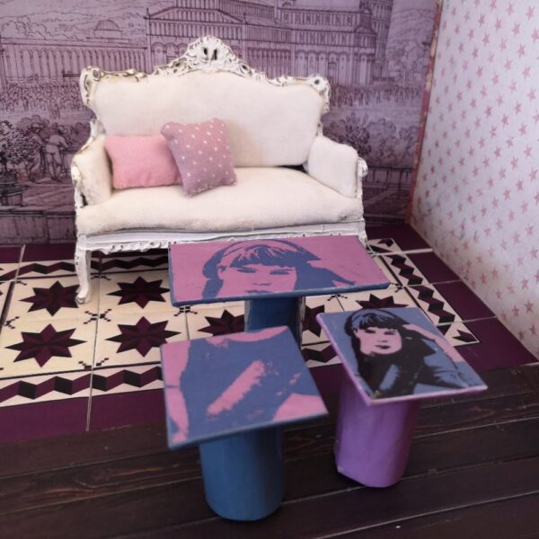 Elaboro productos en miniatura hechos a mano, pequeñas obras artísticas, entre las que destacan baldosas y muebles artesanales. Aparte diseño interiores y construyo escenarios con decoración actual. También realizo cuadros y objetos decorativos. Dispongo de tutoriales, paso a paso de mis trabajos, y materiales para descargar.