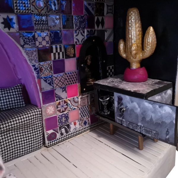 Elaboro productos en miniatura hechos a mano, pequeñas obras artísticas, entre las que destacan baldosas y muebles artesanales. Aparte diseño interiores y construyo escenarios con decoración actual. También realizo cuadros y objetos decorativos. Dispongo de tutoriales, paso a paso de mis trabajos, y materiales para descargar.