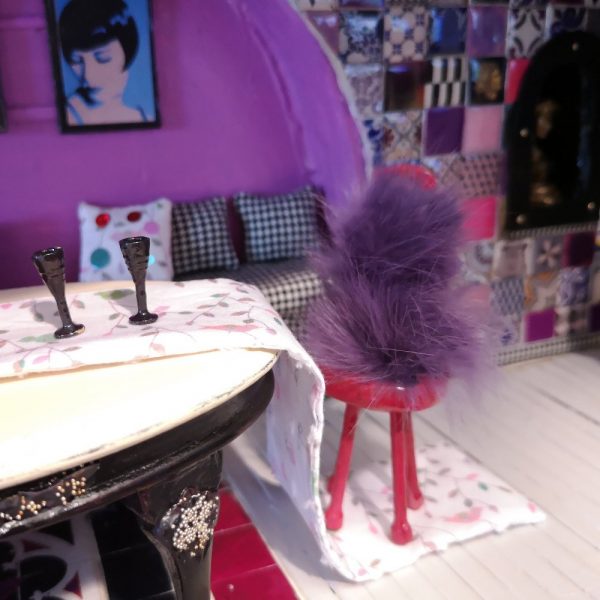 Elaboro productos en miniatura hechos a mano, pequeñas obras artísticas, entre las que destacan baldosas y muebles artesanales. Aparte diseño interiores y construyo escenarios con decoración actual. También realizo cuadros y objetos decorativos. Dispongo de tutoriales, paso a paso de mis trabajos, y materiales para descargar.