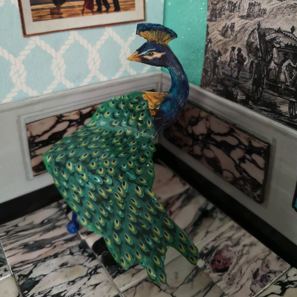 Disponemos de un modelo parecido: Pavo real en frasco de cristal.