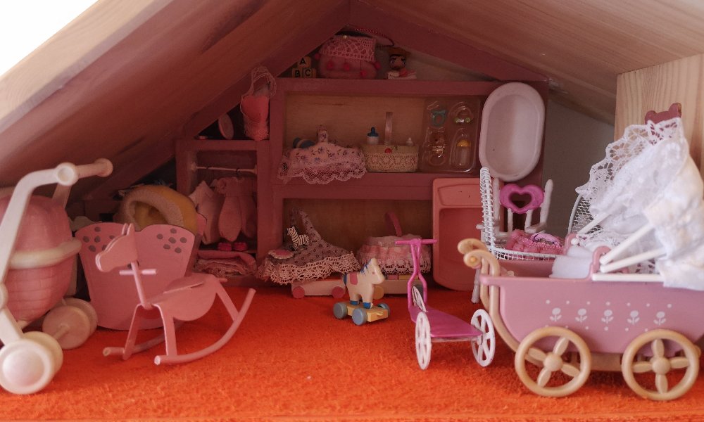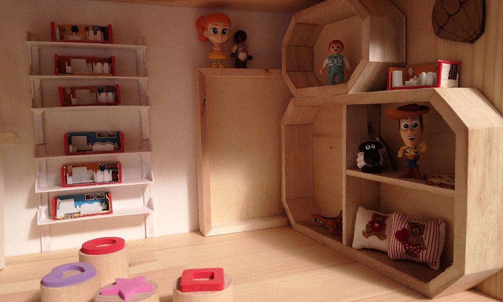 Os presento la juguetería al completo. En la parte superior se encuentra el rincón del bebé. Vamos a explorarlo un poco…