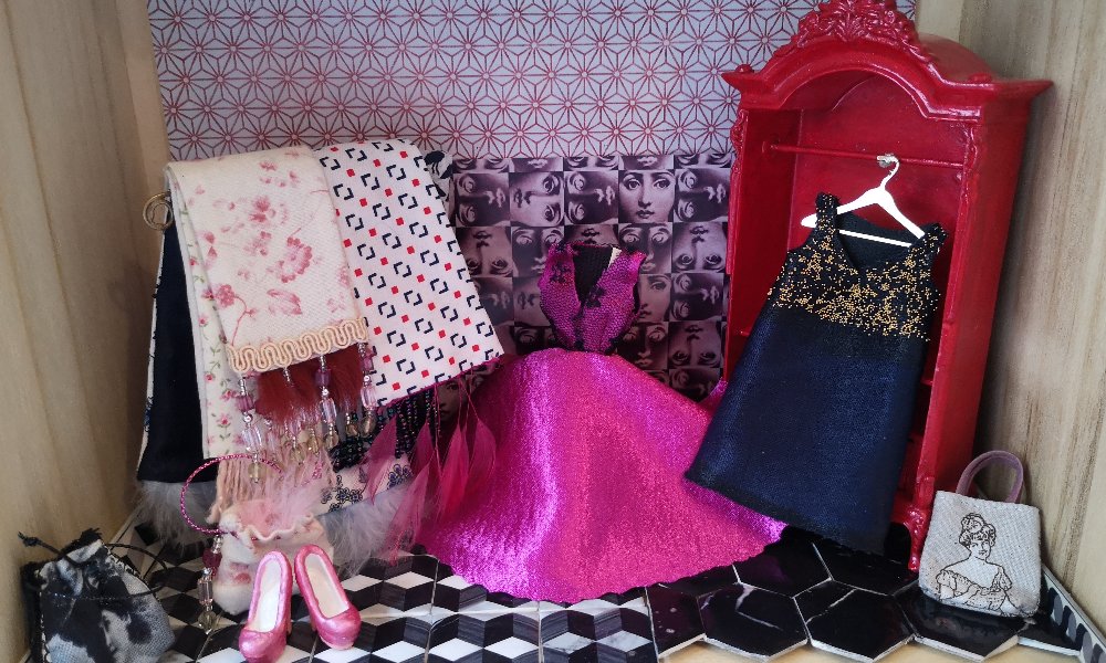Tengo ganas de hacer este escenario, una especie de habitación vestidor con múltiples vestidos, zapatos, etc., en el estilo que se aprecia en la foto.