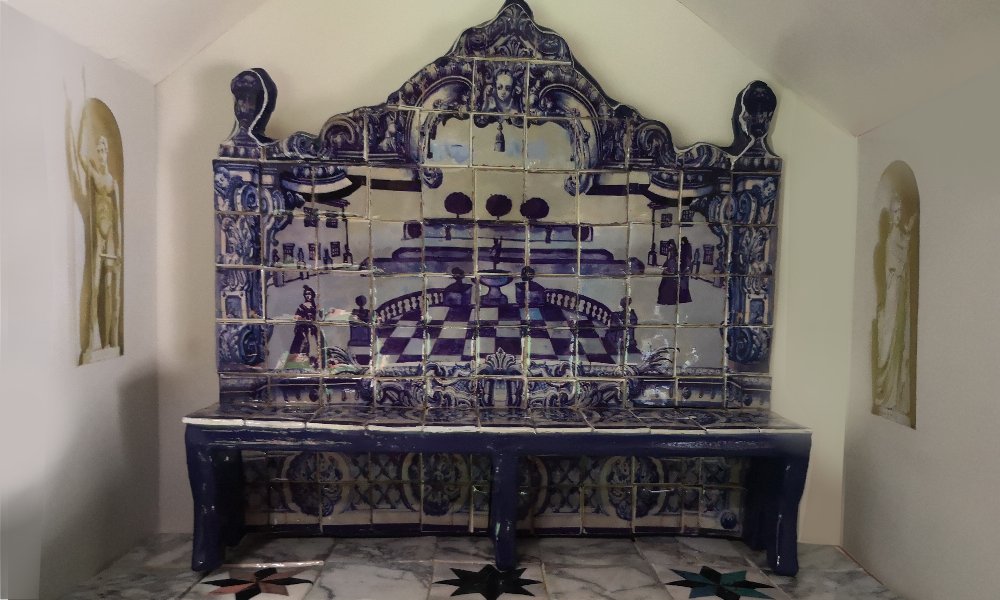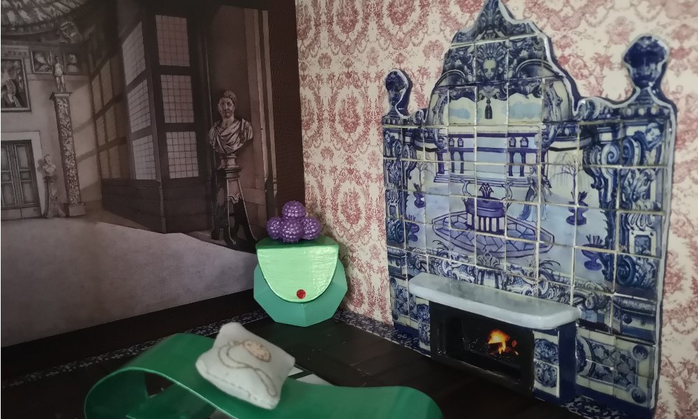 Vamos a ver cómo proyecté y realicé la chimenea holandesa, además de la chimenea y bancada portuguesa. Estos elementos los podemos encontrar en la galería de imágenes del escenario la casa del obispo. Además la chimenea holandesa se exhibe en la galería de la habitación con dosel floreado.