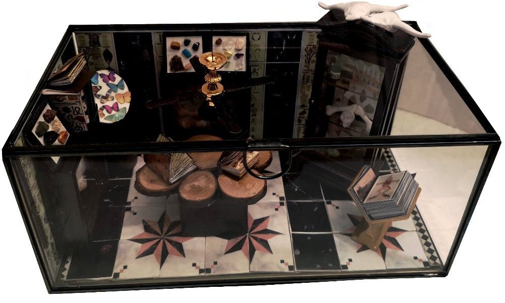 Este invernadero de 42 x 39 x 19 cm será un escenario parecido al Gabinete de curiosidades de la imagen superior, tal vez combinado con toques florales, está todo en el aire… Dispongo de otro parecido con patas de mayor tamaño pero en este pretendo que domine el concepto de invernadero propiamente dicho.