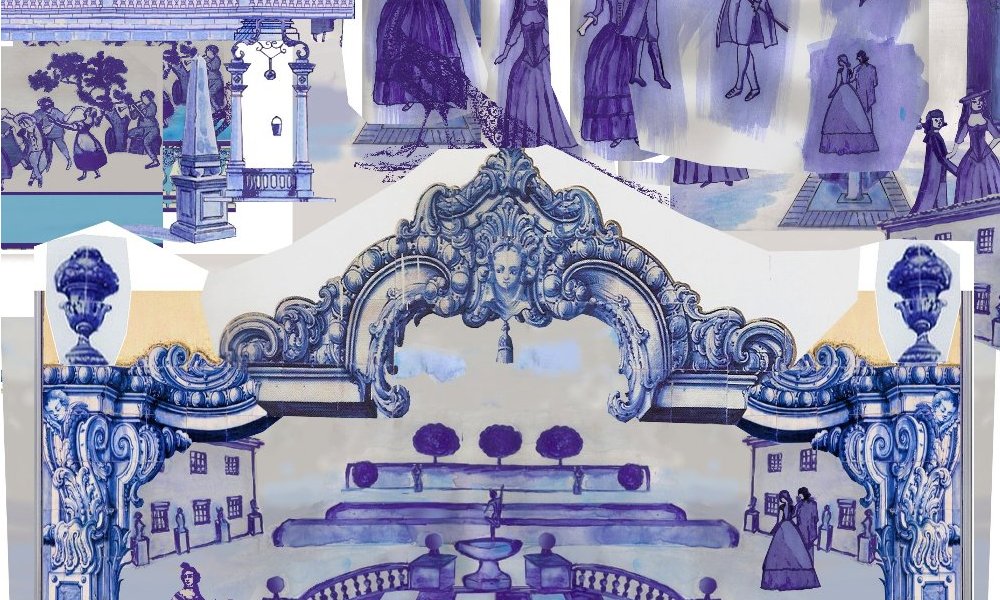 Al igual que sucede en la Bancada portuguesa o en el Baño azulado portugués, primero dibujé y pinté los elementos incluidos en los murales.