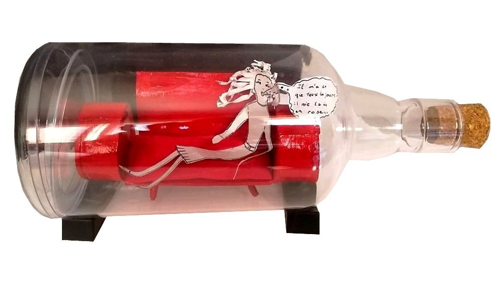Lo mismo para la botella de cristal vacía (realmente es de plástico) . Puedo hacer algo al estilo de chica en una botella: La vie en rose.