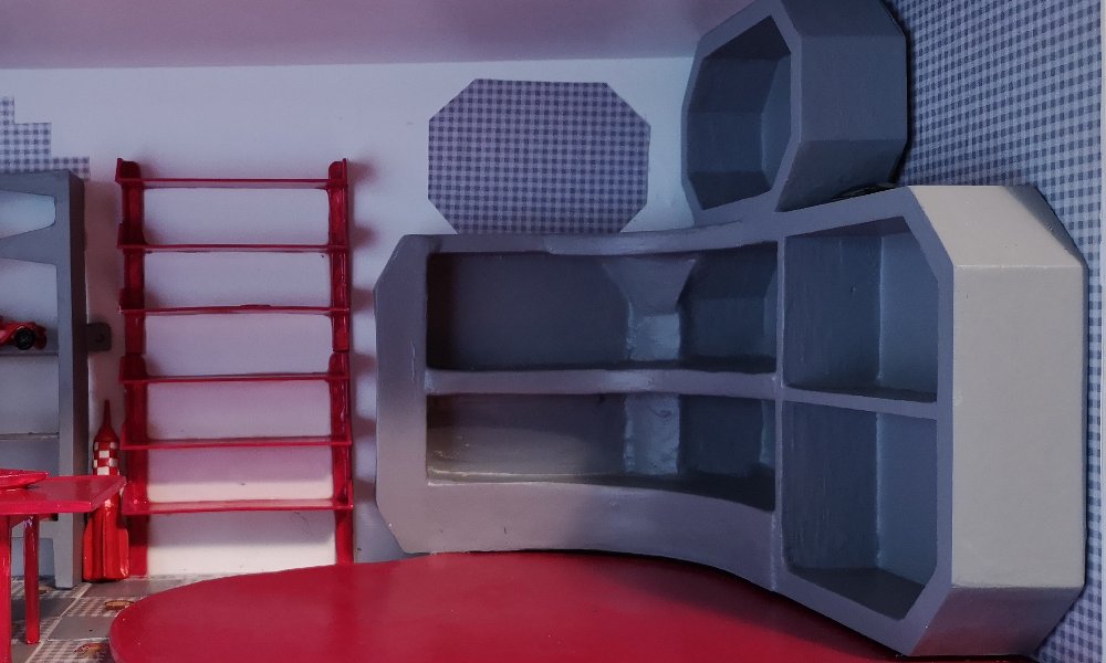 Os muestro la estantería terminada para ver su evolución íntegra, aunque hubo otros pasos intermedios en la realización del escenario.