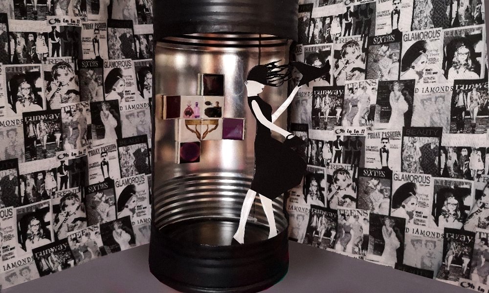 Con este juego de latas recicladas de frascos de perfume pretendo realizar varios pequeños escenarios del estilo de ducha tormentosa de la imagen superior.