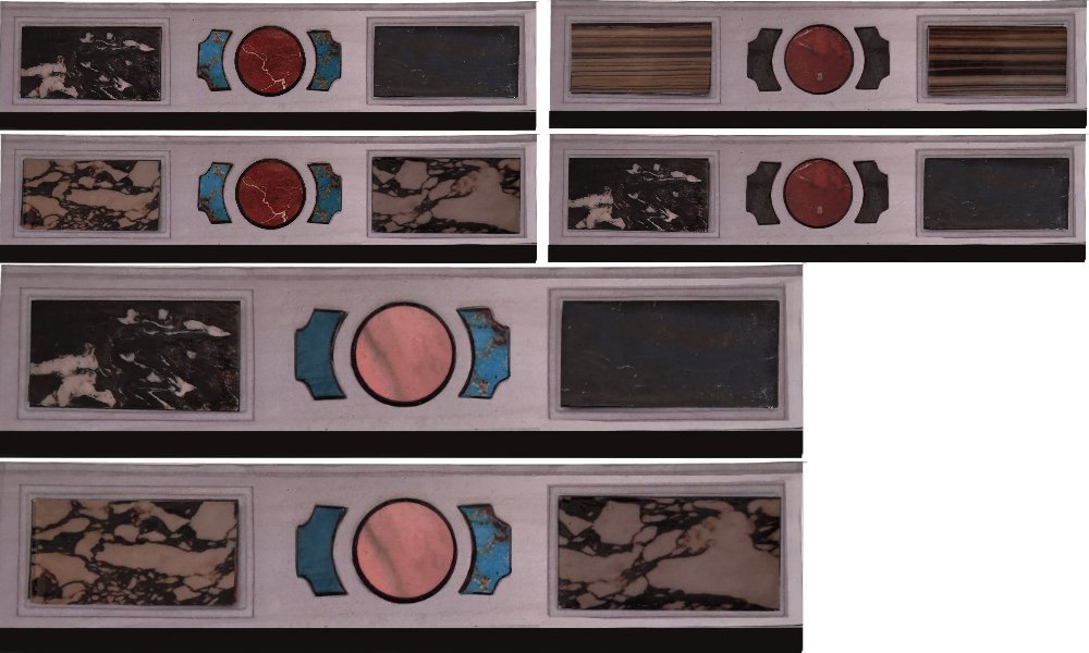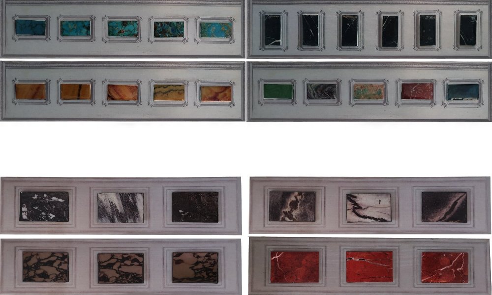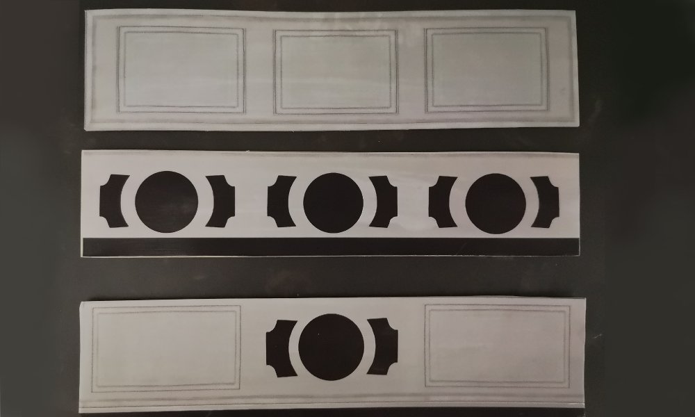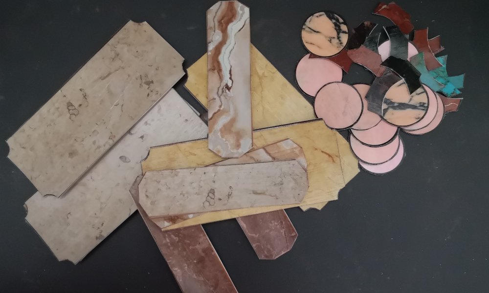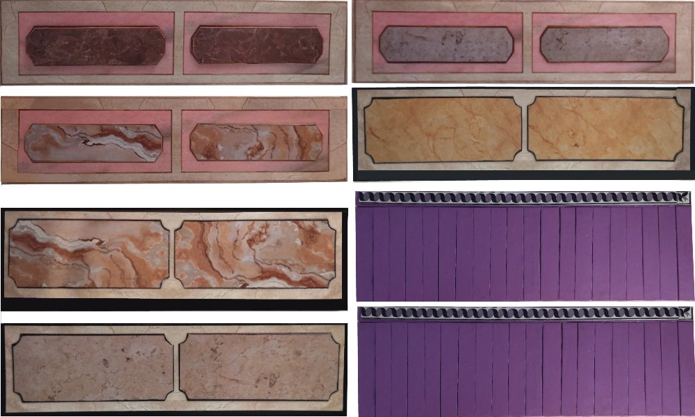 En esta imagen tenemos todos las piezas recortadas que se van a pegar sobre la base de los zócalos.